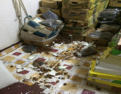 وأوضحت الهيئة أنه بعد تتبع الموقع اتضح وجود مستودع في قبو العمارة تخزن فيه التمور الفاسدة، وتبين لاحقاً انه غير مرخص وغير مطابق للمواصفات القياسية الخاصة بتخزين الأغذية، فضلاً عن تدني مستوى النظافة ووجود انابيب الصرف الصحي التي كانت ظاهرة في سقف المستودع، مع ملاحظة آثار لفضلات القوارض بداخله وكميات من التمور مقضومه بفعل القوارض نفسها.