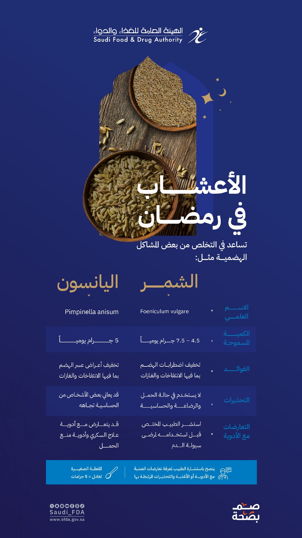 وأكدت "الهيئة" أن الأعشاب من المواد التي ينبغي استخدامها بحذر كأي مادة أخرى ذات استخدام علاجي، كما تنصح باستشارة الطبيب قبل استخدامها؛ إذ إنها قد تتعارض مع بعض المستحضرات الدوائية أو المنتجات الغذائية.