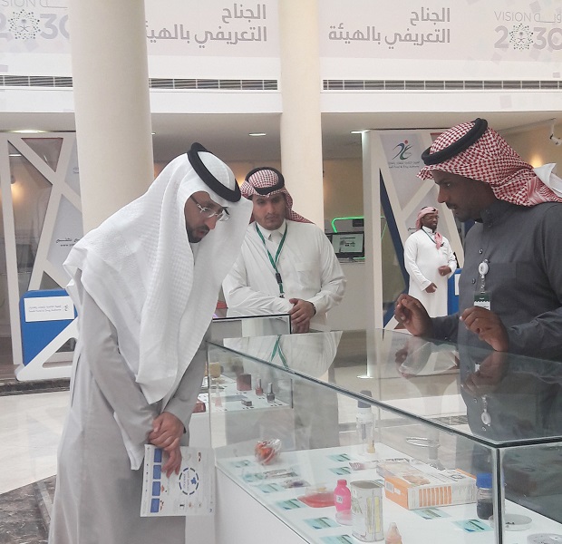 ويضم جناح الهيئة 4 أركان يبدأ بـ "معلومات تعريفية عن الهيئة"، ثم ركن "الخلطات العشبية"، وركن "التسمم الغذائي"، وركن "البصريات"، ويشاهد الزائر أيضاً عينات غذائية ودوائية وأجهزة ومنتجات طبية مغشوشة أو محظورة.