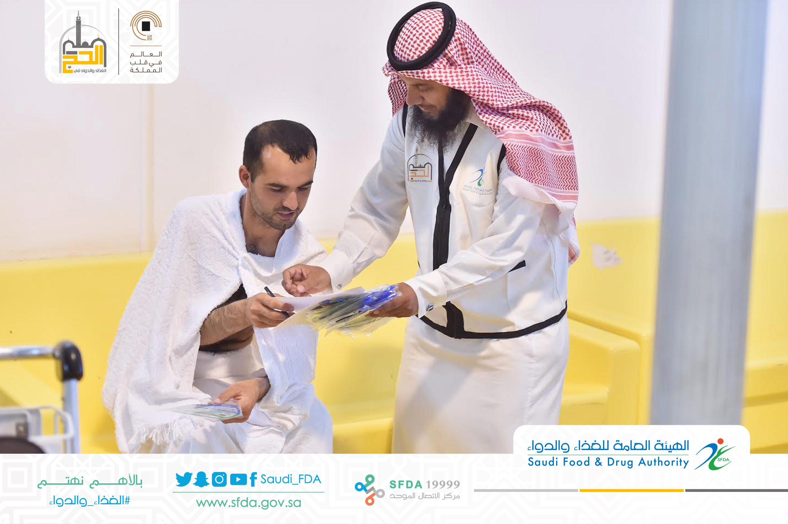 أما في الجانب التوعوي فاستمر مختصو الهيئة بتقديم النصائح والإرشادات التوعوية لضيوف الرحمن القادمين عبر صالة الحجاج  بمطار الملك عبدالعزيز الدولي بجدة، وذلك لرفع مستوى وعيهم الغذائي والدوائي.
