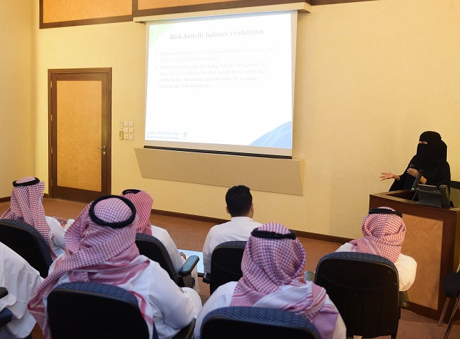 نظّمت الهيئة العامة للغذاء والدواء ممثلة بالمركز الوطني للتيقظ والسلامة الدوائية، دورة تدريبية لممثلي شركات الأدوية، على اشتراطات الدليل الإرشادي لأسس الممارسة الجيدة للتيقظ الدوائي، وذلك في مبنى قطاع الدواء بالرياض، بحضور 26 مشاركاً يمثلون مكاتب التيقظ في الشركات الدوائية.