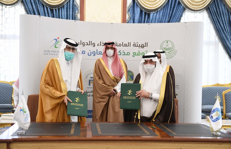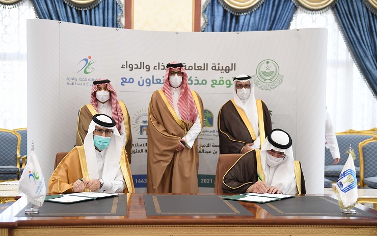 شهد صاحب السمو الملكي الأمير سعود بن خالد الفيصل نائب أمير منطقة المدينة المنورة، مراسم توقيع ثلاثة مذكرات تعاون بين الهيئة العامة للغذاء والدواء، مع جامعة الأمير مقرن، وجامعة طيبة، والجامعة الإسلامية.