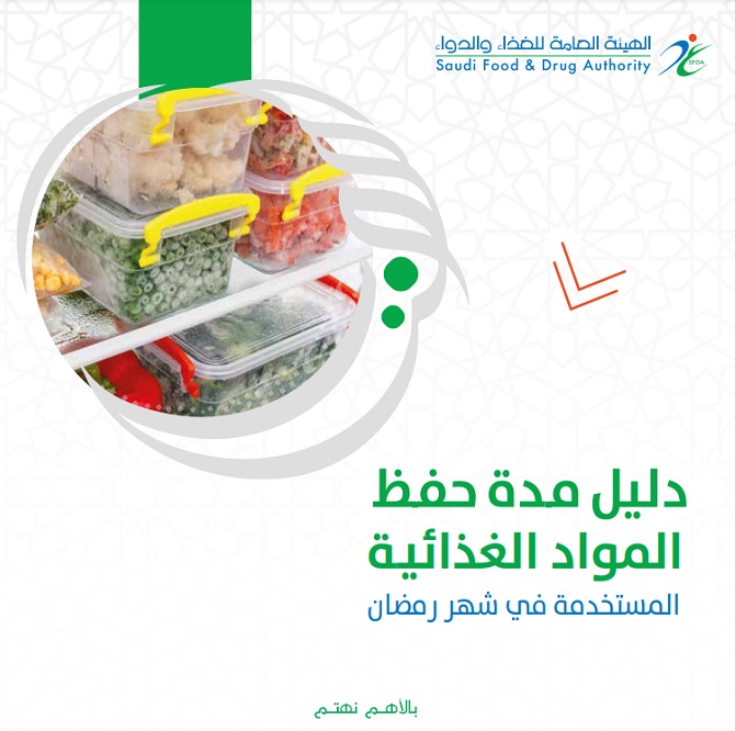 يُذكر أن "الغذاء والدواء" أعدت دليلًا إرشاديًا للمساعدة في معرفة مدة حفظ المواد الغذائية الشائع استخدامها خلال شهر رمضان