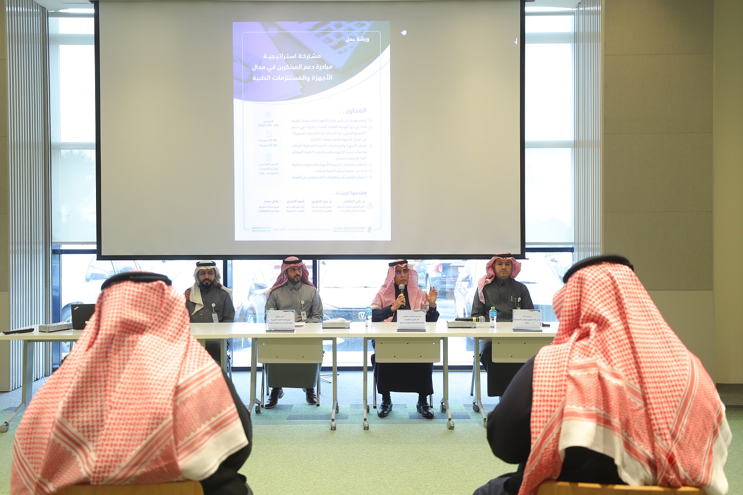 نظّمت الهيئة العامة للغذاء والدواء بالتعاون مع الشركة السعودية للصناعات الأساسية (سابك)، ورشة عمل لبحث مشاركة استراتيجية دعم المبتكرين في مجال الأجهزة والمستلزمات الطبية 2023م في مدينة الرياض، وذلك ضمن مبادرة "نساند" التابعة للشركة.