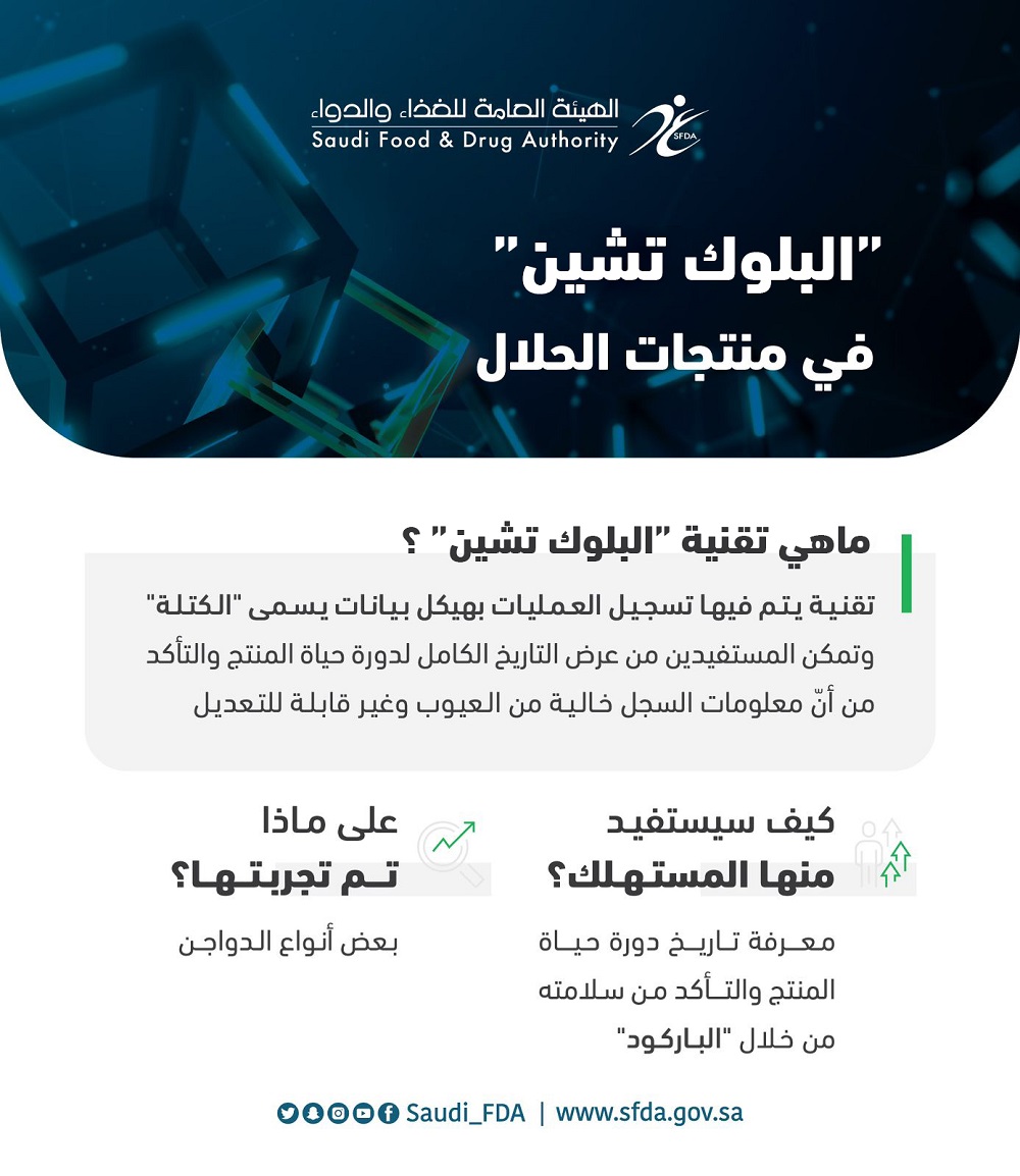 "الغذاء والدواء" تمكِّن المستهلكَ من تتبع مصادر الغذاء بتقنية سلسلة الكتل "البلوك تشين"