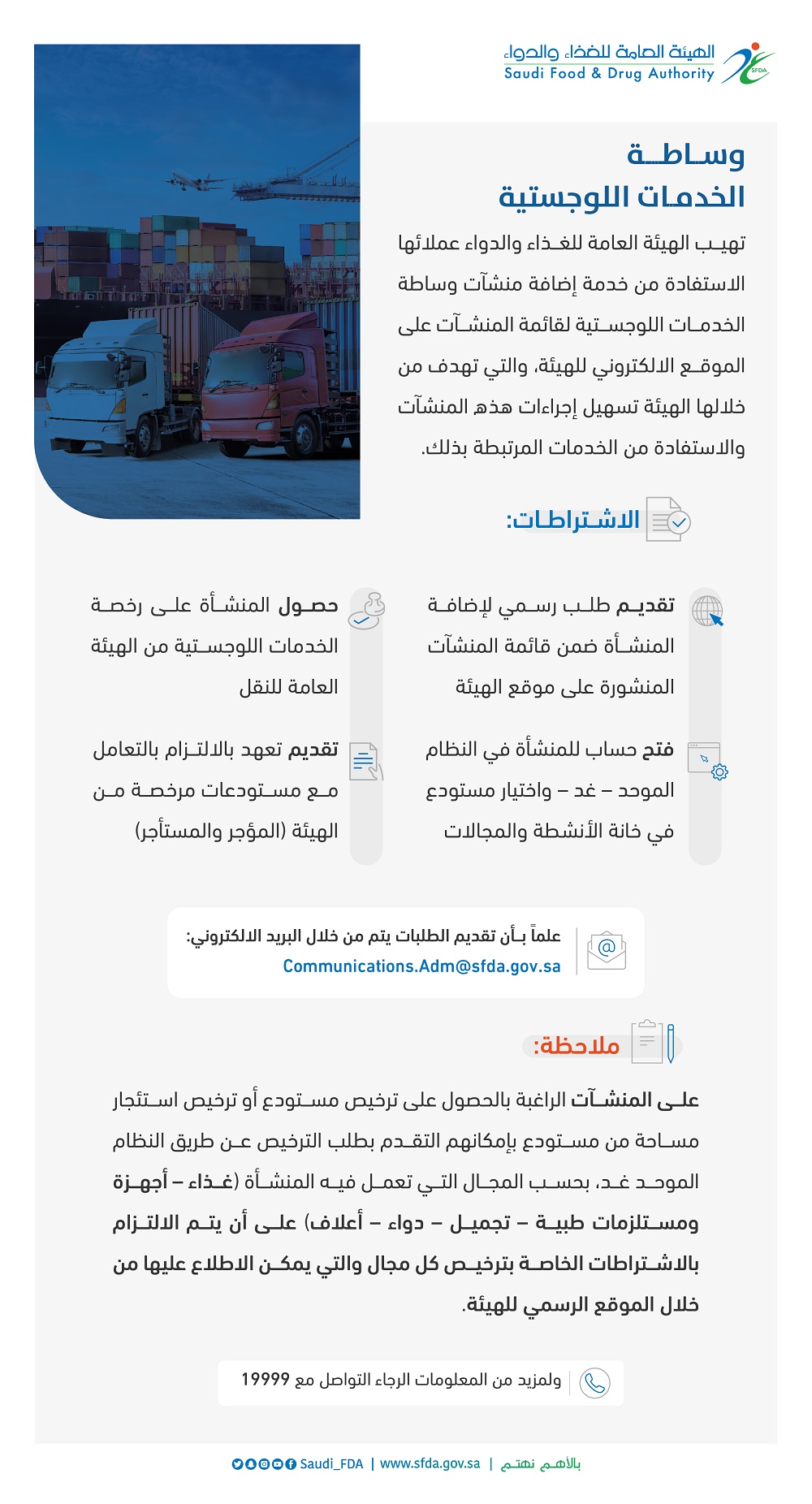 تعميم طلب رخصة وساطة الخدمات اللوجستية