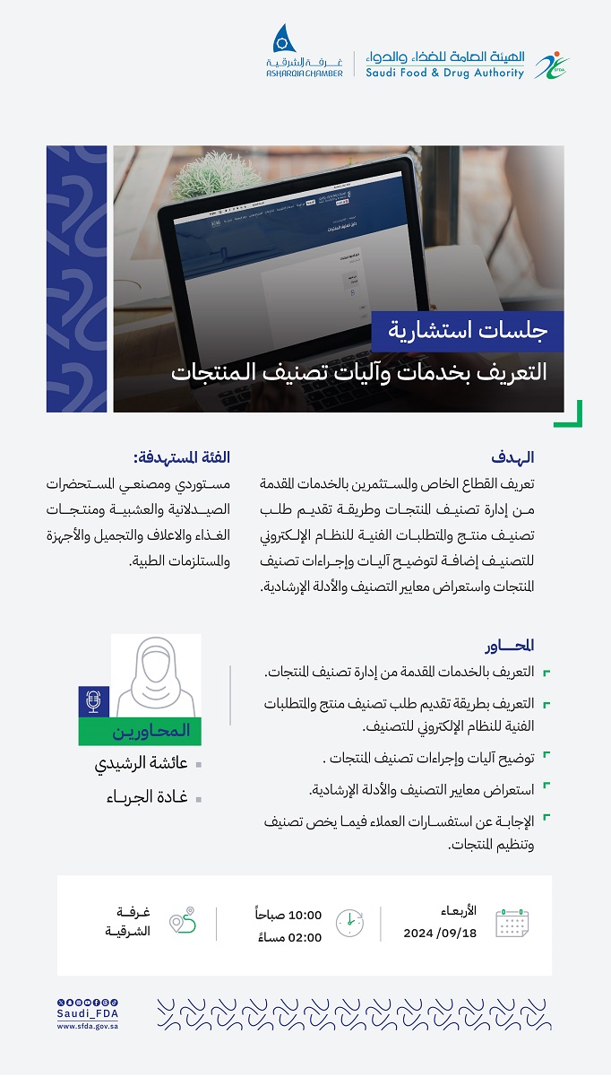 Septemberجلسات استشارية : التعريف بخدمات وآلية تصنيف المنتجات