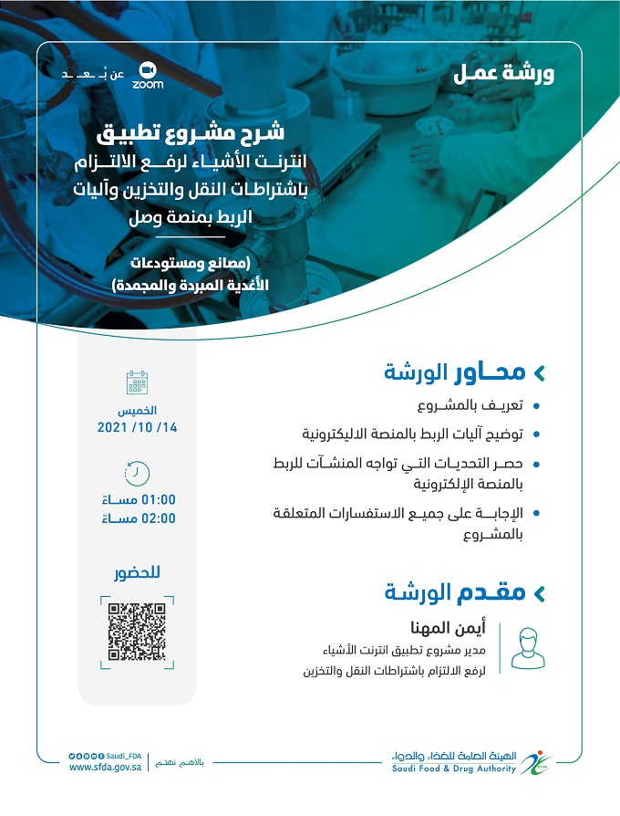 Octoberشرح مشروع تطبيق انترنت الأشياء لرفع الالتزام باشتراطات النقل والتخزين وآليات الربط بمنصة وصل "مصانع ومستودعات الأغدية المبردة والمجمدة "