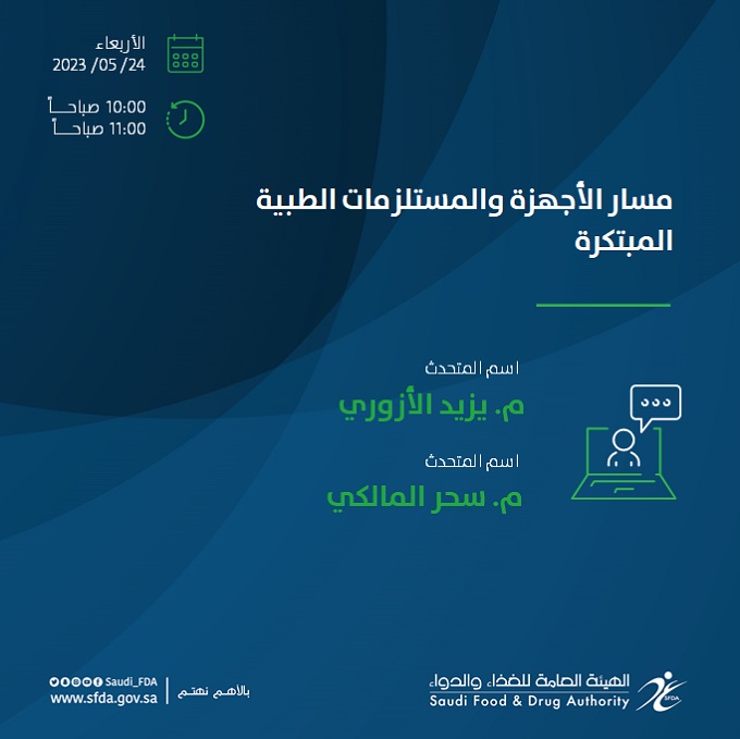 • نبذة عن دور الهيئة العامة للغذاء والدواء في دعم (التصنيع المحلي) و (الابتكار) في مجال الأجهزة والمستلزمات الطبية