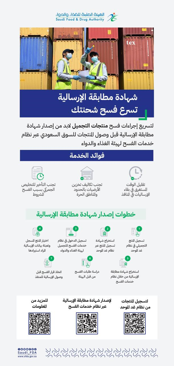 The Saudi Food and Drug Authority (SFDA) has announced the ability to issue certificates of conformity for shipments from the country of origin through the "Faseh Cosmetic Products in the Electronic Clearance (FASEH) System." This initiative aims to enhance the importers' experience by automating the appointment of approved companies and enabling electronic submission of clearance requests, thus expediting the procedures for clearing cosmetic product shipments.