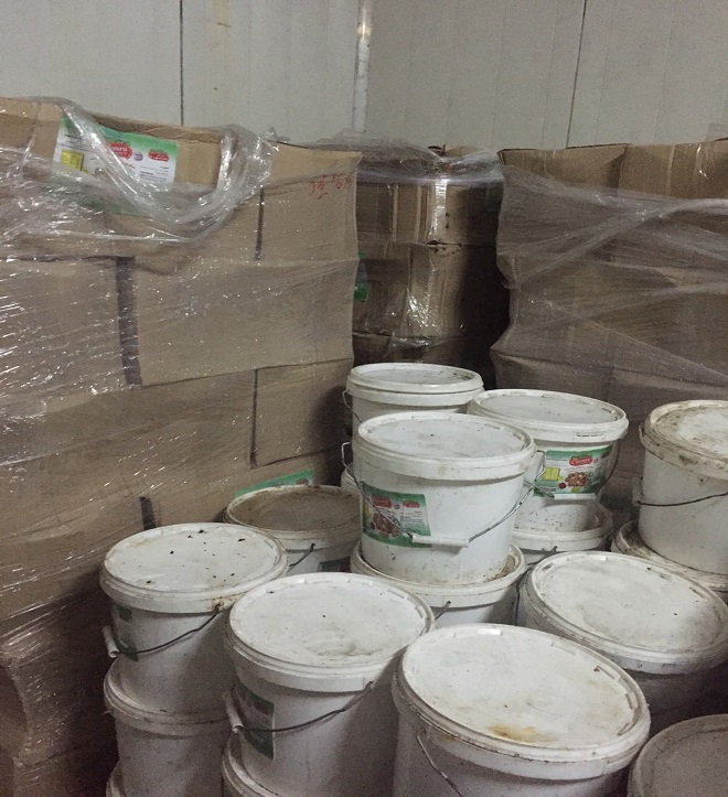 SFDA explained in a statement, that SFDA inspectors, through their intensive tours to food and water factories, imported food warehouses and stores, and local food production and distribution centers, to make sure of their commitment to terms and conditions of manufacturing, trading and  storage, have seized 9900 kilograms of different juice concentrates flavors in Buraidah, and more than 80 gallons of expired food products (Pickles - Grape Leaves - Makdous) in Al Khumrah district in Jeddah city, which were ready for  distribution to restaurants, cafeterias and fast food shops.