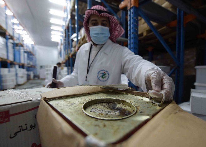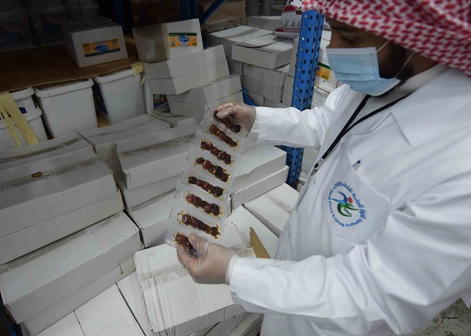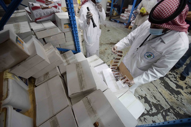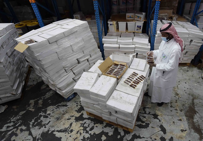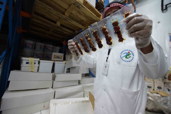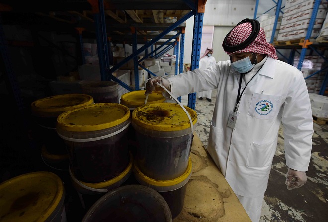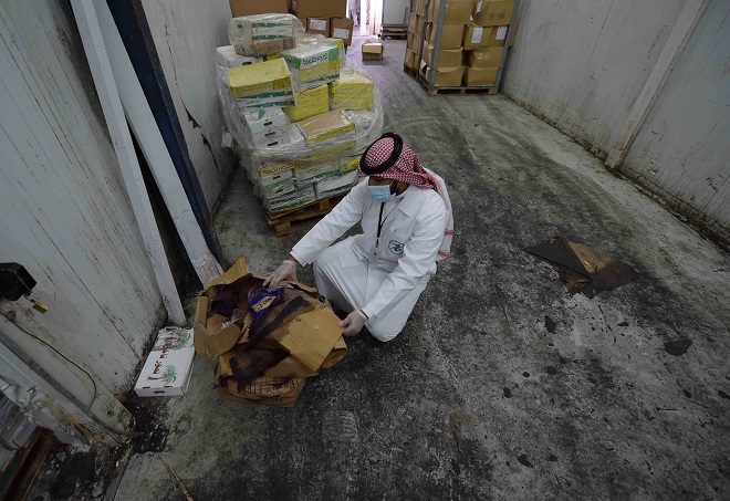 The inspection teams revealed that more than 3,700 kilograms of expired foods were found in warehouses in Alkhomra district of Jeddah. They also found around 1522 kg of expired dates packed in 435 packets ready for distribution to Iftar projects, in addition to 210 kg of dates without labeling. The seizures also included 1950 kg of frozen roasted eggplant that is not valid for human consumption and olive oil showing signs of decay as well as expired Salmon fish.