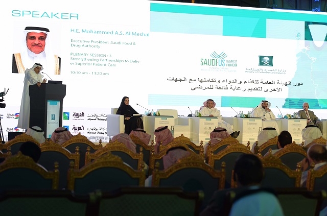 He said in a worksheet submitted at The American Saudi Business Opportunities Forum held in Riyadh, that SFDA work integrates with other agencies to provide superior care for patients, and is considered a key player in health care by providing and supporting the private sector in creating a flexible and easy systems for drugs and medical devices registration to stimulate investment in this area, in addition to supporting scientific medication research, and supporting and encouraging pharmaceutical companies to invest in the Kingdom through factories construction and to establish research centers, and to provide scientific and technical support to companies investing in the Kingdom, and to ensure the safety of medical equipment and supplies and its performance for the purpose that it made for and to follow their efficiency in health facilities.