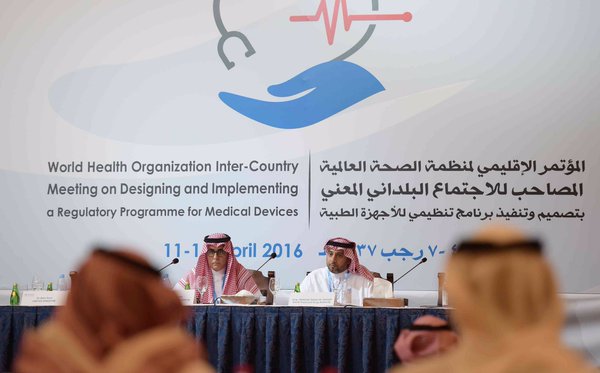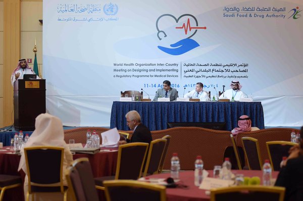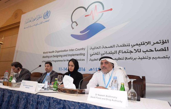 Prof. Almishal said today ‘Monday’ during opening WHO Regional Conference associated with the world health organization inter-country meeting on designing and implementing a regulatory program of medical devices: “ I am pleased to welcome you in the WHO Regional Conference associated with the world health organization inter-country meeting, Organized by SFDA in cooperation with WHO and in line with the keenness of the Custodian of the Two Holy Mosques, King Salman bin Abdul Aziz and Crown Prince, Chairman of SFDA Board and their directions to SFDA towards taking care of citizens and residents safety and health.
