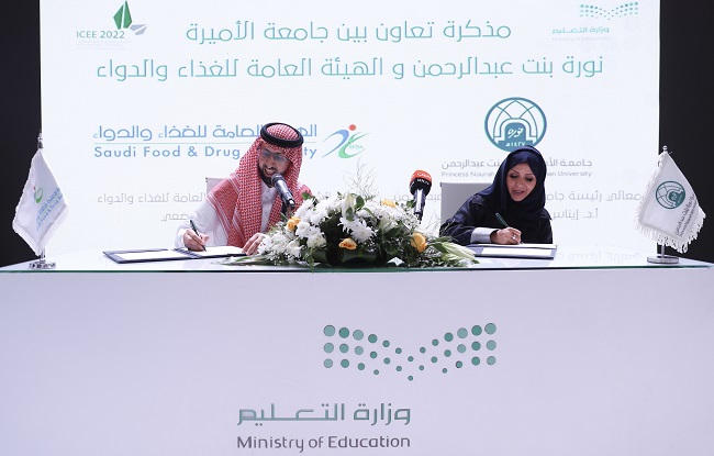 The Saudi Food and Drug Authority (SFDA) signed two memoranda of cooperation (MoC), on Monday May 9, 2022, with Princess Noura Bint Abdulrahman University (PNU) and King Khalid University (KKU), on the sidelines of the International Exhibition and Forum for Education 2022 at the Riyadh International Convention and Exhibition Center.