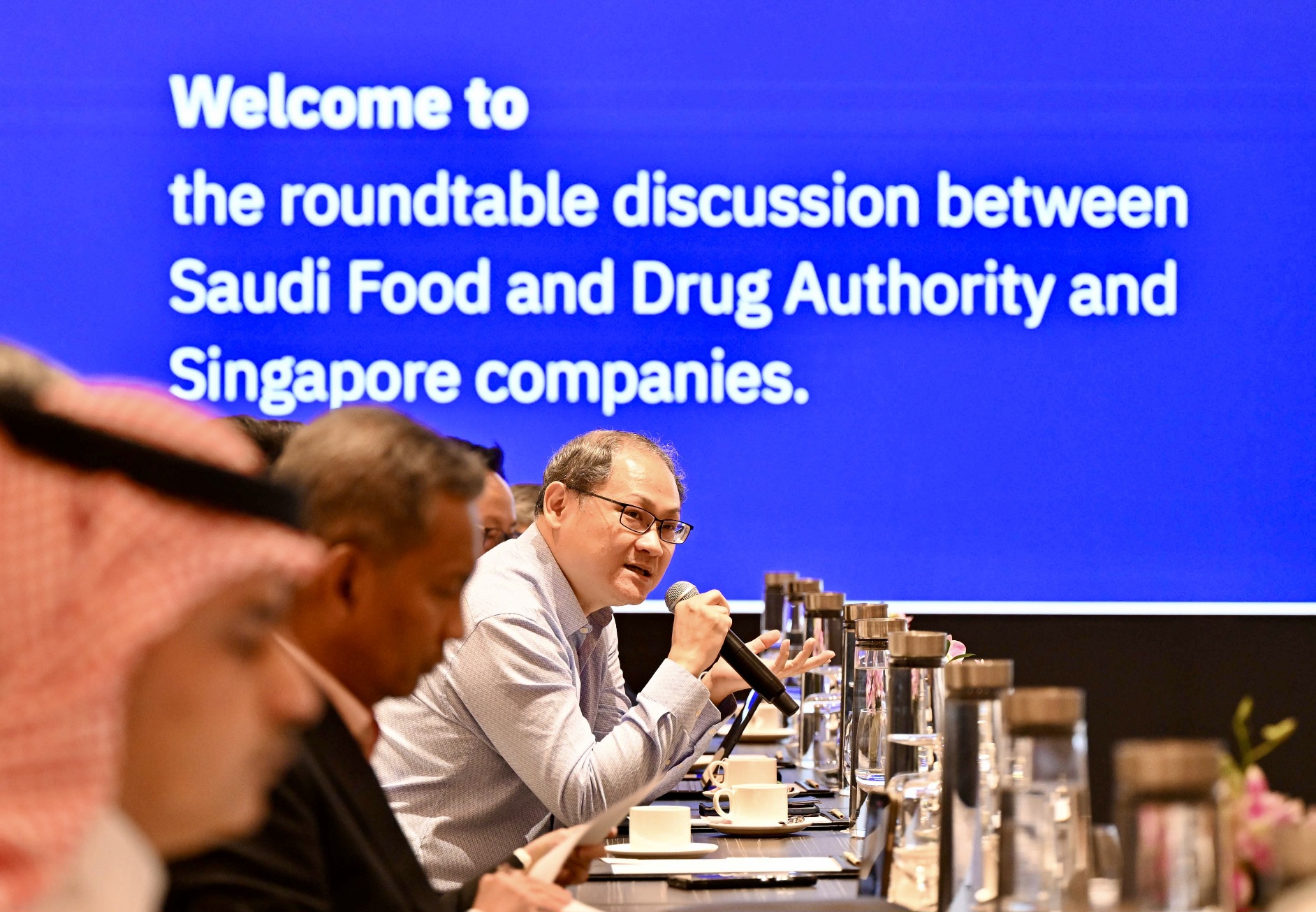 ترأس معالي الرئيس التنفيذي للهيئة العامة للغذاء والدواء الأستاذ الدكتور هشام بن سعد الجضعي، نقاش الطاولة المستديرة الذي جرى عقده بين الهيئة وممثلي شركات الأغذية والأدوية في سنغافورة، وذلك بحضور سفير خادم الحرمين الشريفين لدى جمهورية سنغافورة عبدالله بن محمد الماضي.
