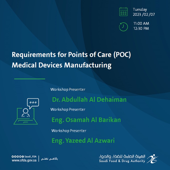 - SFDA Prerequisites for Points of Care (POC) Medical Devices Manufacturing