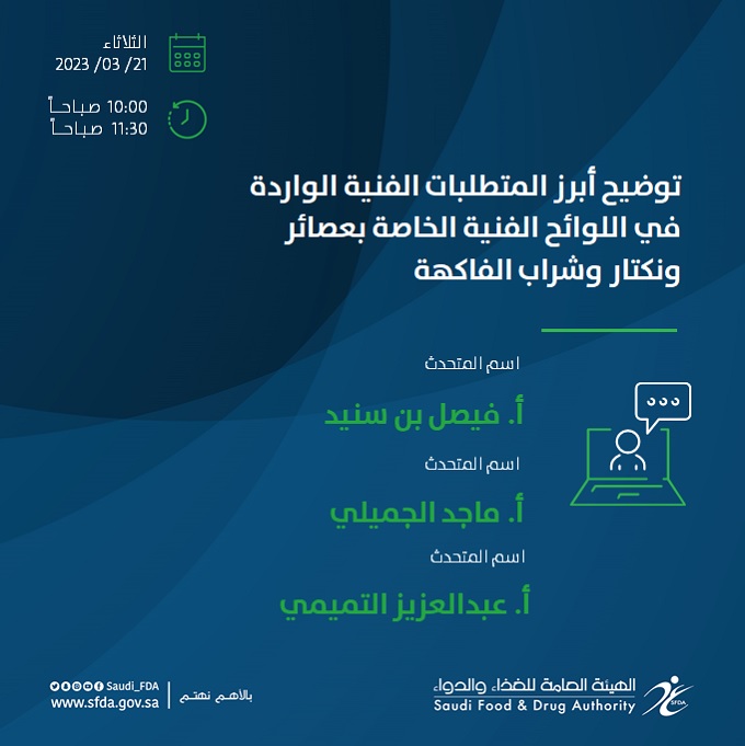 Marchتوضيح أبرز المتطلبات الفنية الواردة في اللوائح الفنية الخاصة بعصائر ونكتار وشراب الفاكهة