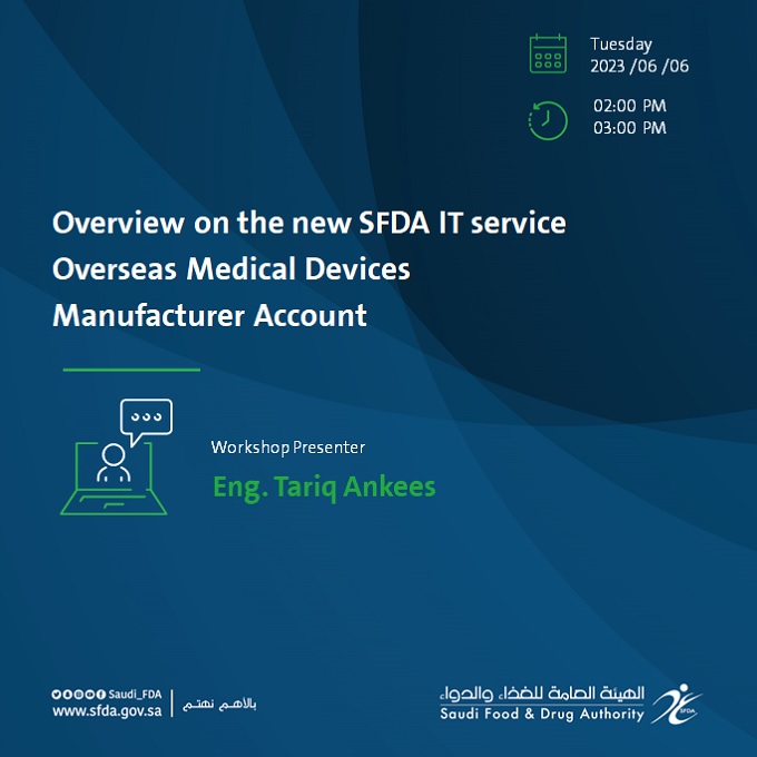 JuneOverview on the new SFDA IT service Overseas Medical Devices Manufacturer Account