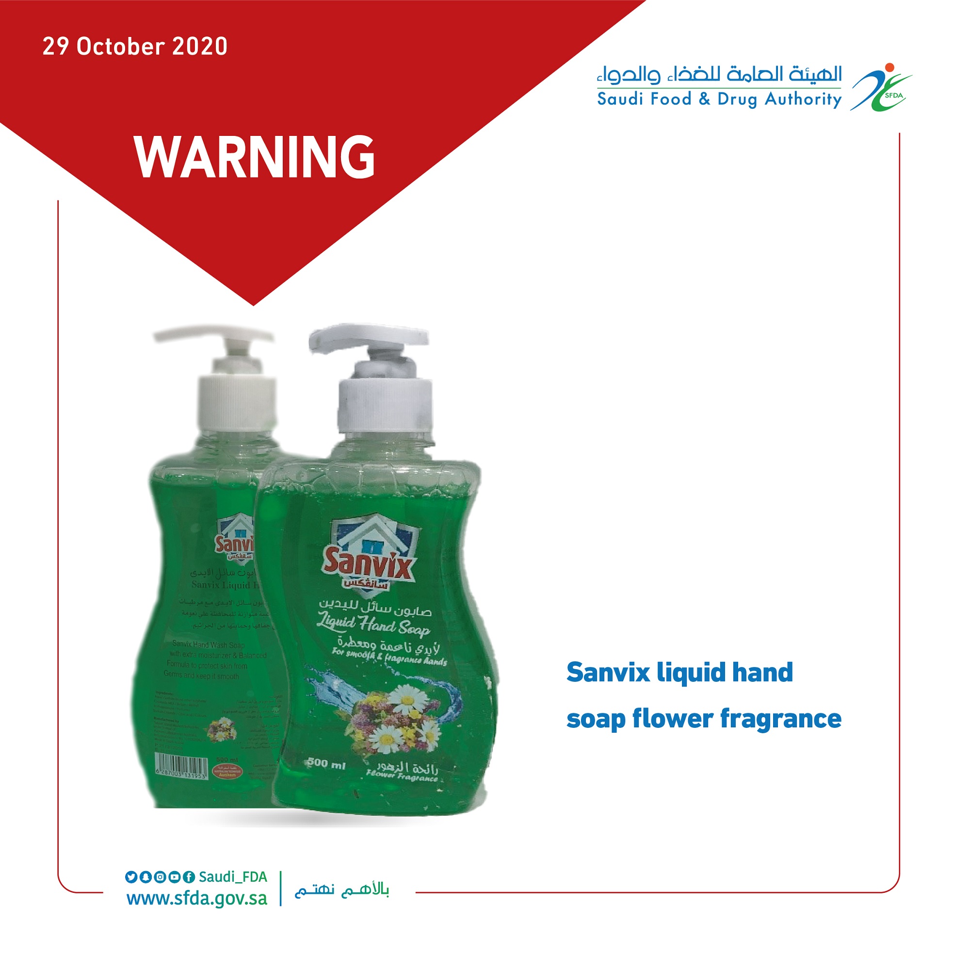 The Saudi Food & Drug Authority (SFDA) is warning against the use of 4 liquid hand soap products due to high levels of bacteria, which is contrary to the safety requirements of cosmetics and personal care products regulations NO. SFDA.CO/GSO 1943:2016.