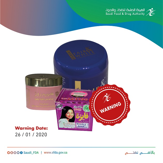 2020-01-26 “SFDA” Warns Consumers against Using Three Skin Care Products due to Contain Elevated Levels of Mercury