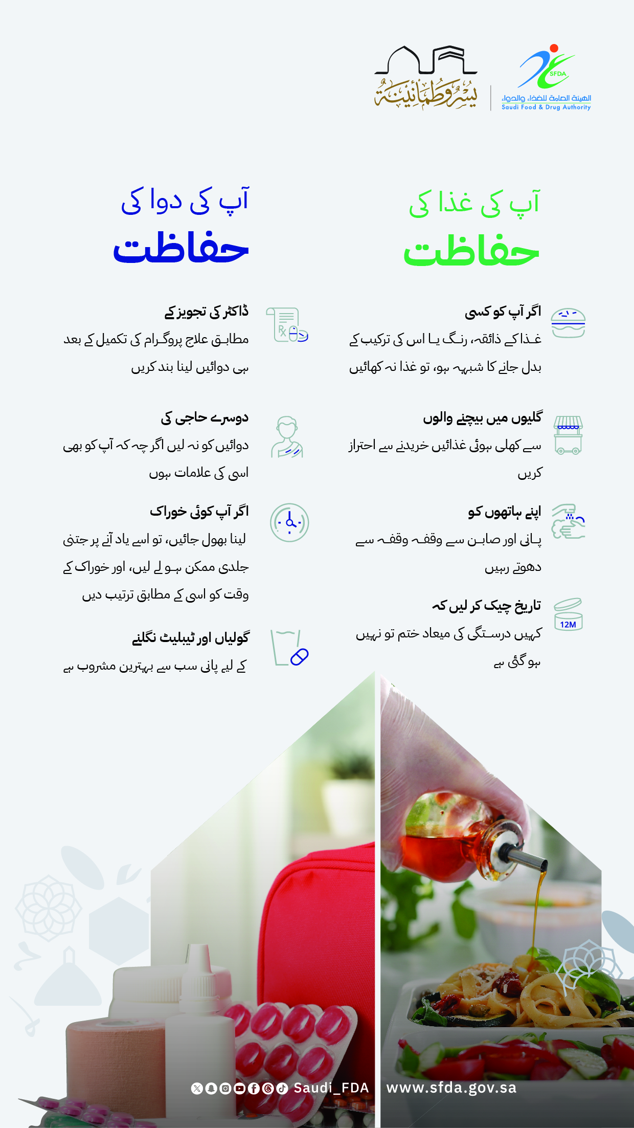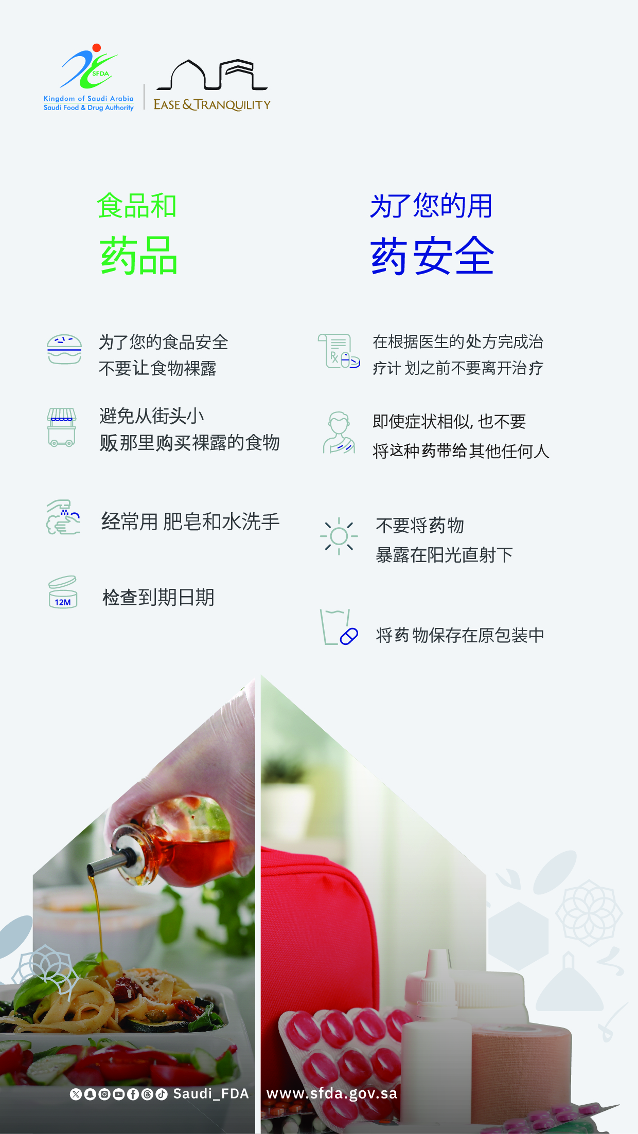 رسائل توعوية في مجالات الغذاء والدواء بـ(9) لغات من الأكثر تحدثًا بين الحجاج تقدم معلومات ونصائح لتوعوية ضيوف الرحمن بما يضمن لهم سلامة المنتجات الغذائية والدوائية
