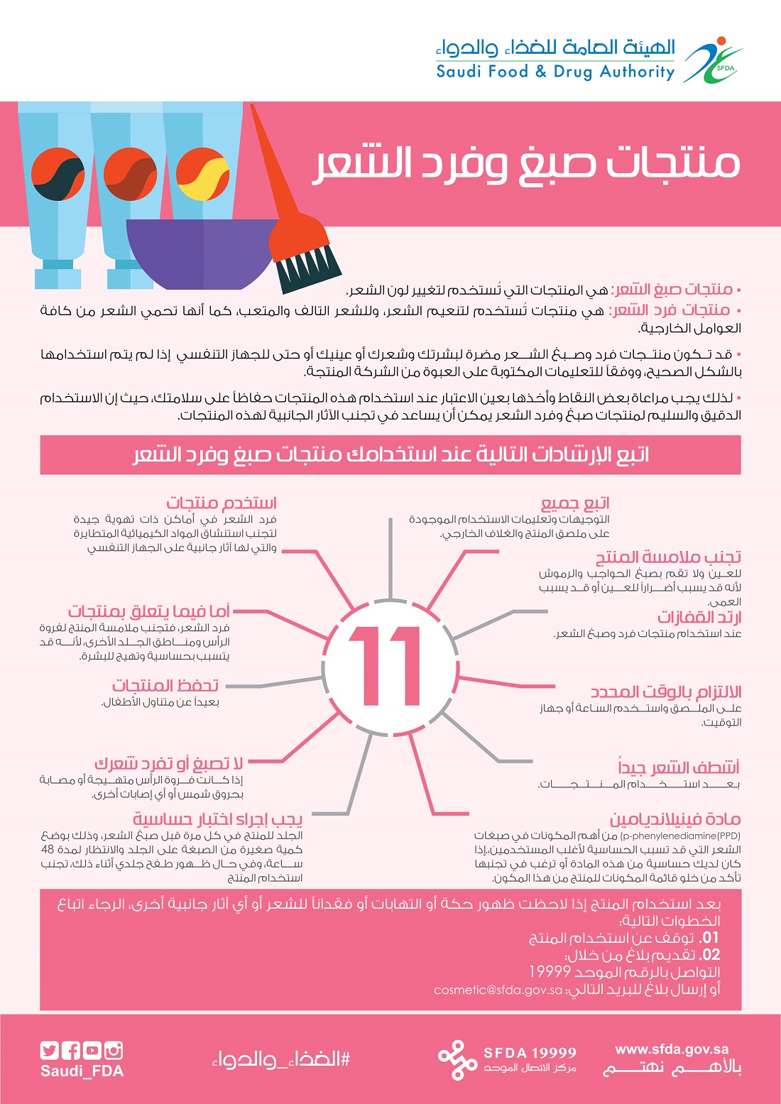 قد تكون منتجات فرد وصبغ الشعر مضرة لبشرتك وشعرك أو عينيك أو حتى للجهاز التنفسي إذا لم يتم استخدامها بالشكل الصحيح ووفقا للتعليمات المكتوبة على العبوة من الشركة المنتجة