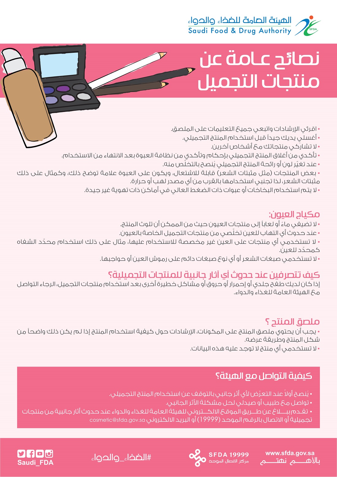 إذا كان لديك طفح جلدي أو احمرار أو حروق أو مشاكل خطيرة أخرى بعد استخدام منتجات التجميل الرجاء التواصل مع الهيئة.
