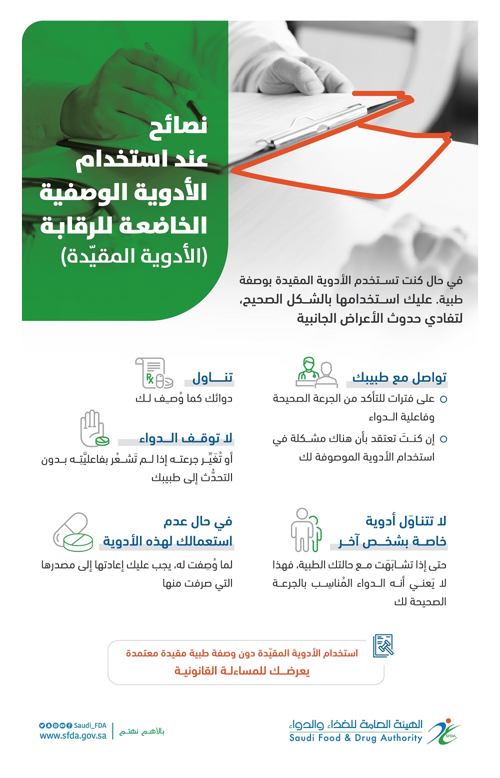 نصائح عند استخدام الأدوية الوصفية الخاضعة للرقابة