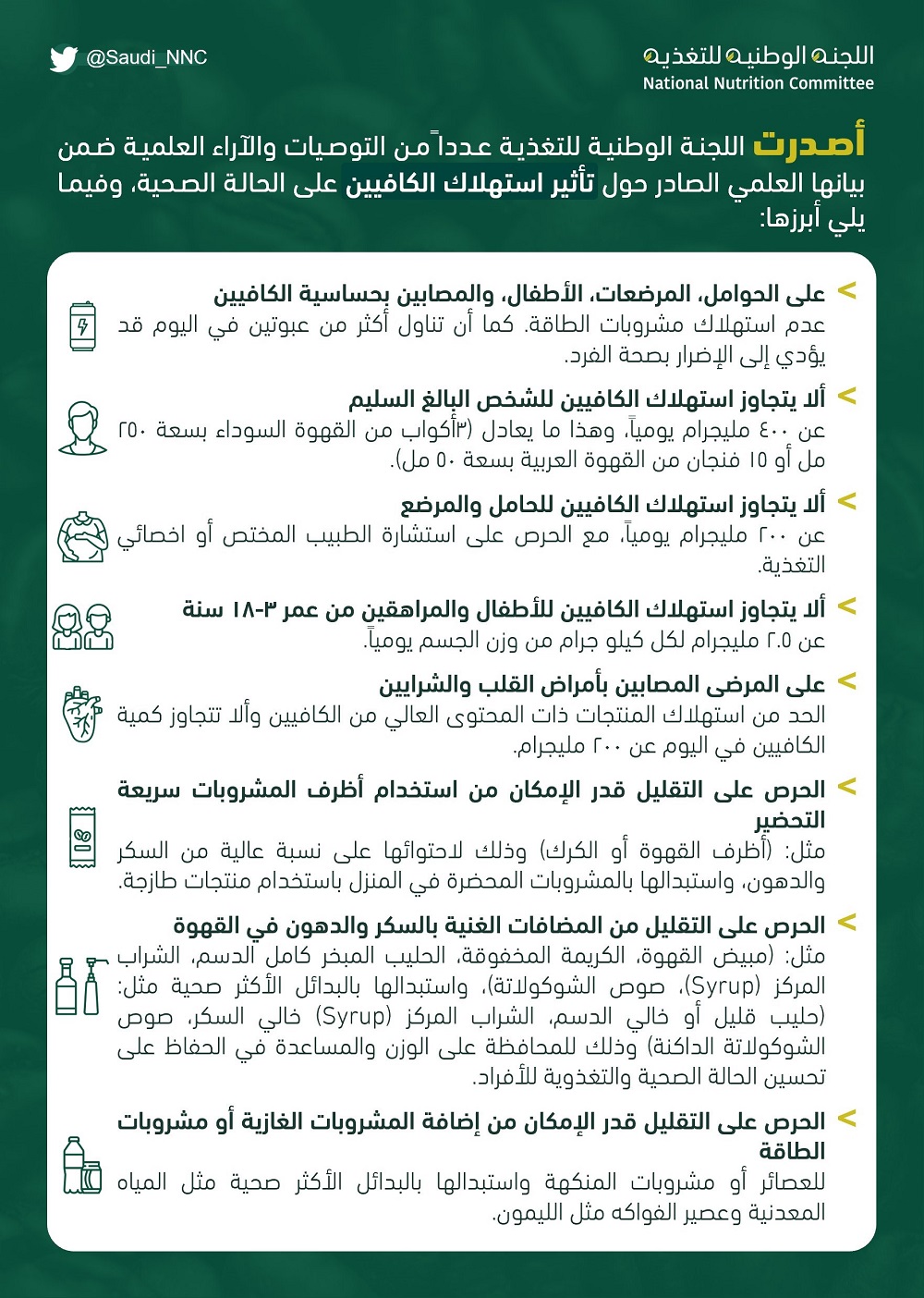 أبرز الآراء والتوصيات العلمية للجنة حول آثار استهلاك الكافيين