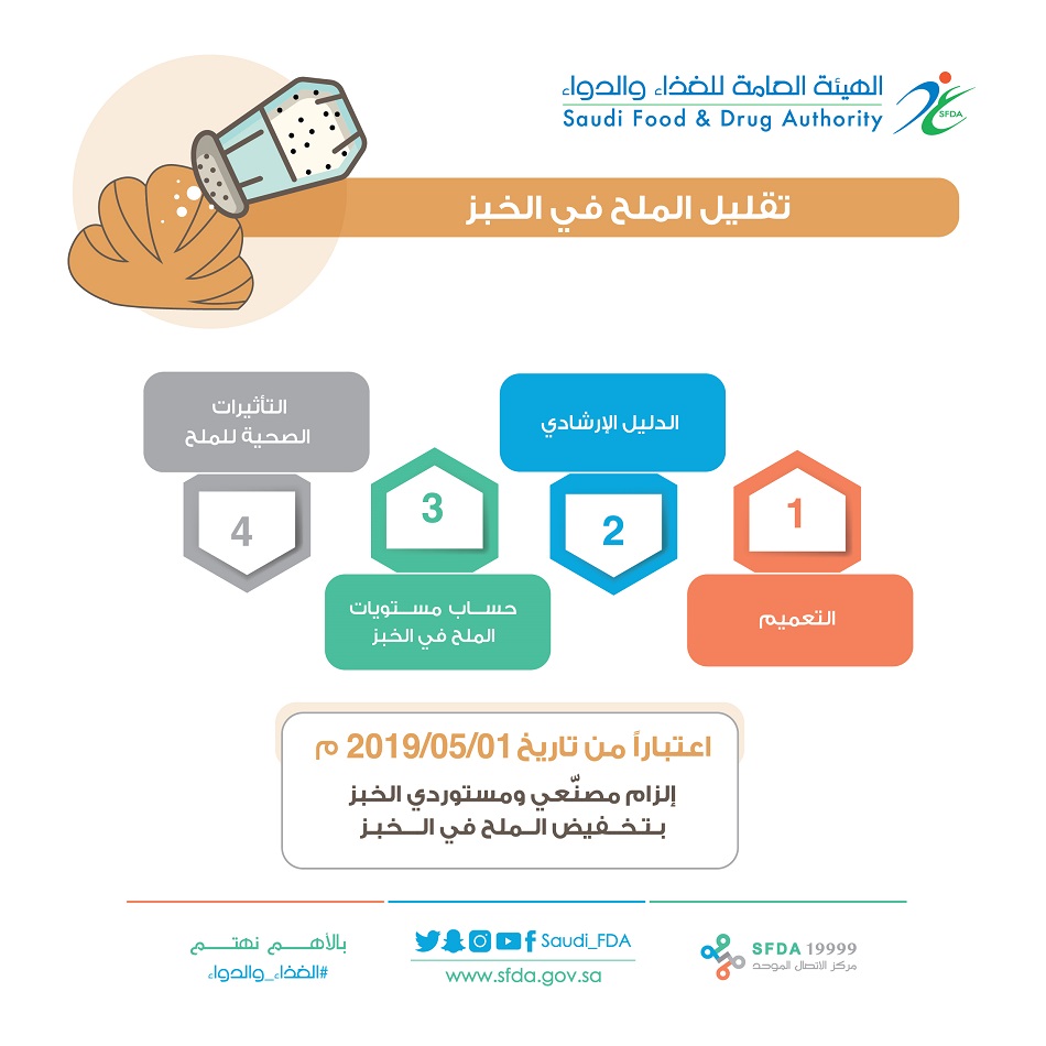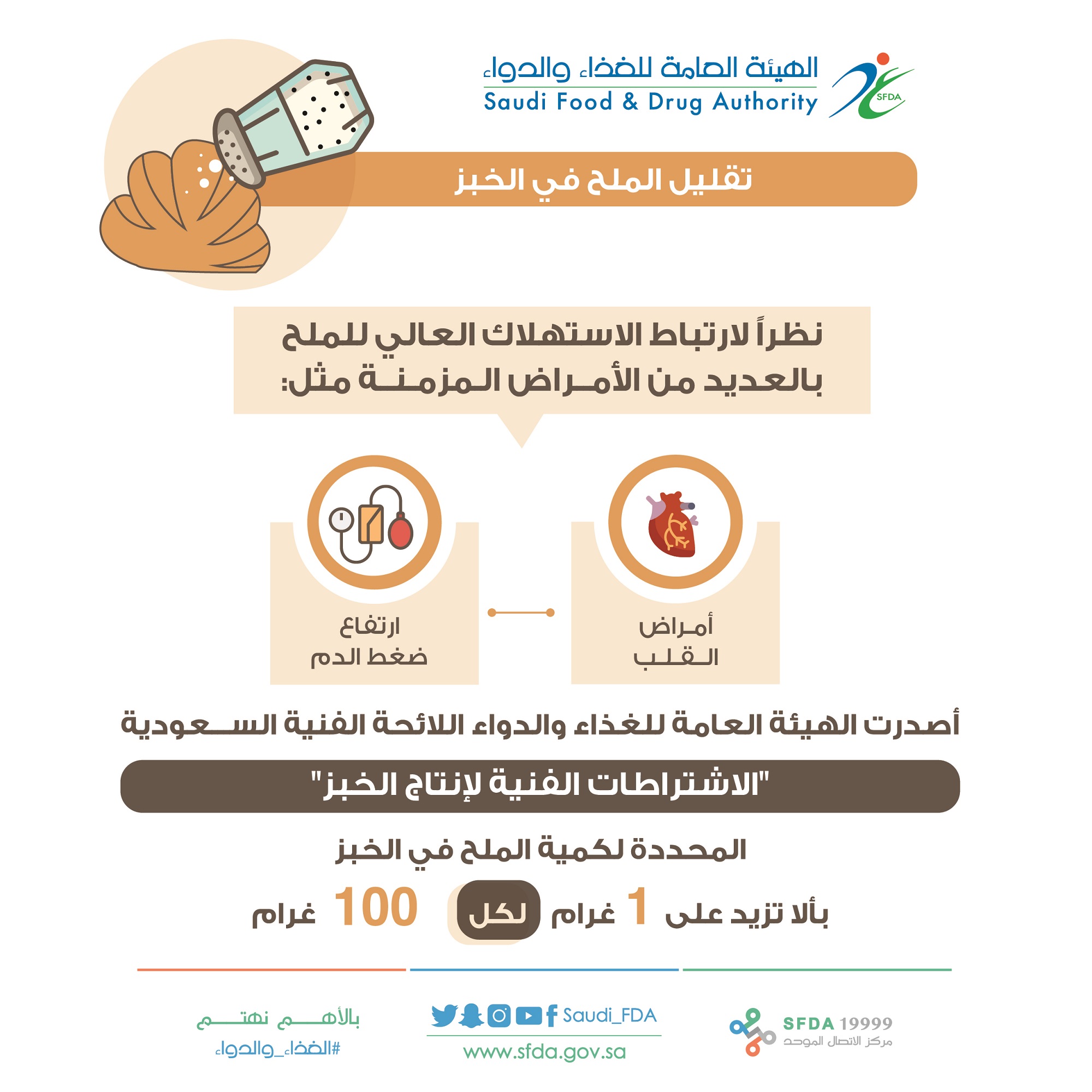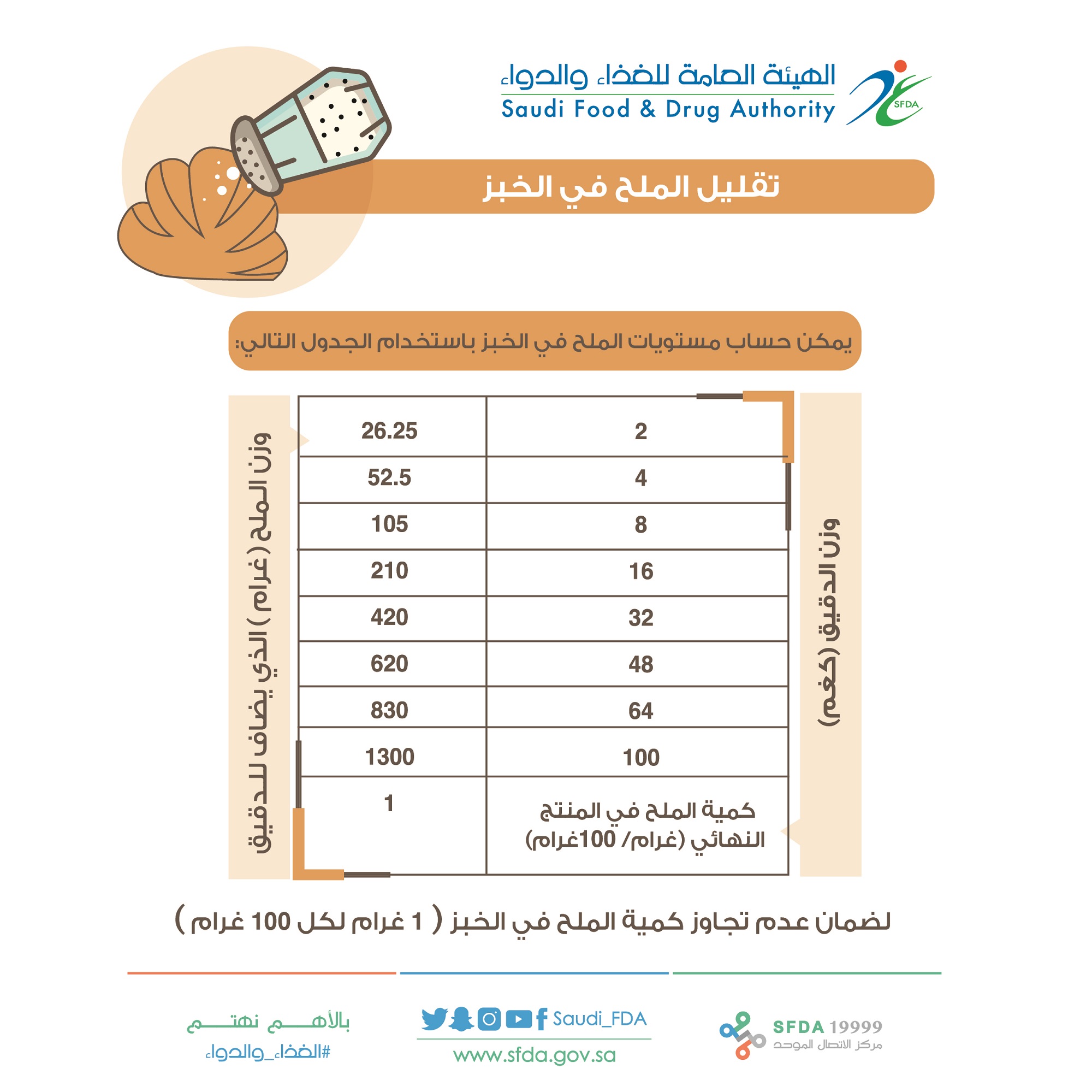 تقليل الملح في الخبز آنفوجرافيك حساب مستويات الملح في الخبز التأثيرات الصحية للملح معلومات التعميم دليل إرشادي