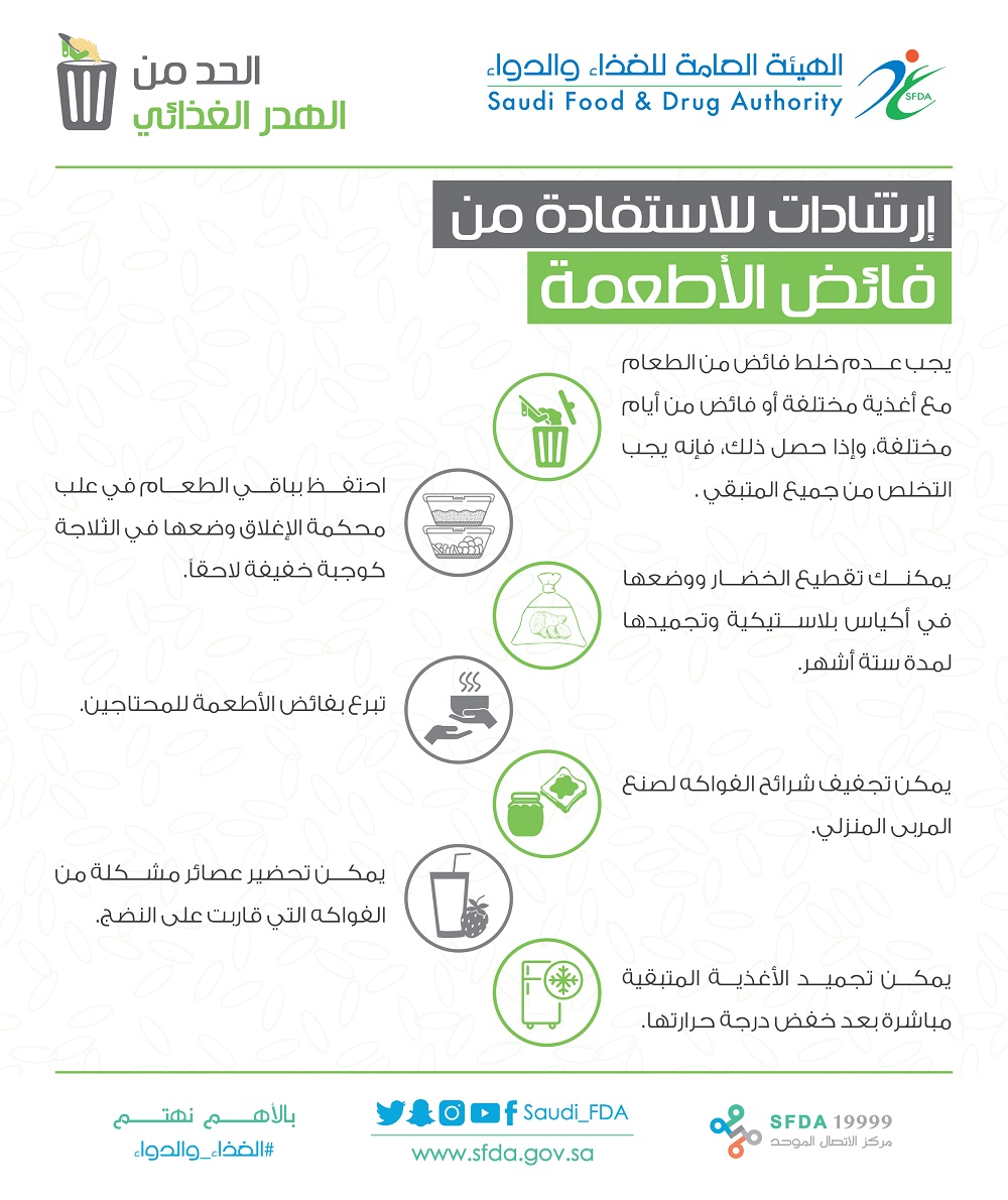 الحد من الهدر الغذائي آنفوجرافيك هدر الغذاء عالمياً تعرف على فترات الصلاحية التسوق الذكي إرشادات للاستفادة من فائض الأطعمة إرشادات لحفظ الطعام إرشادات للاستفادة من فائض المخبوزات