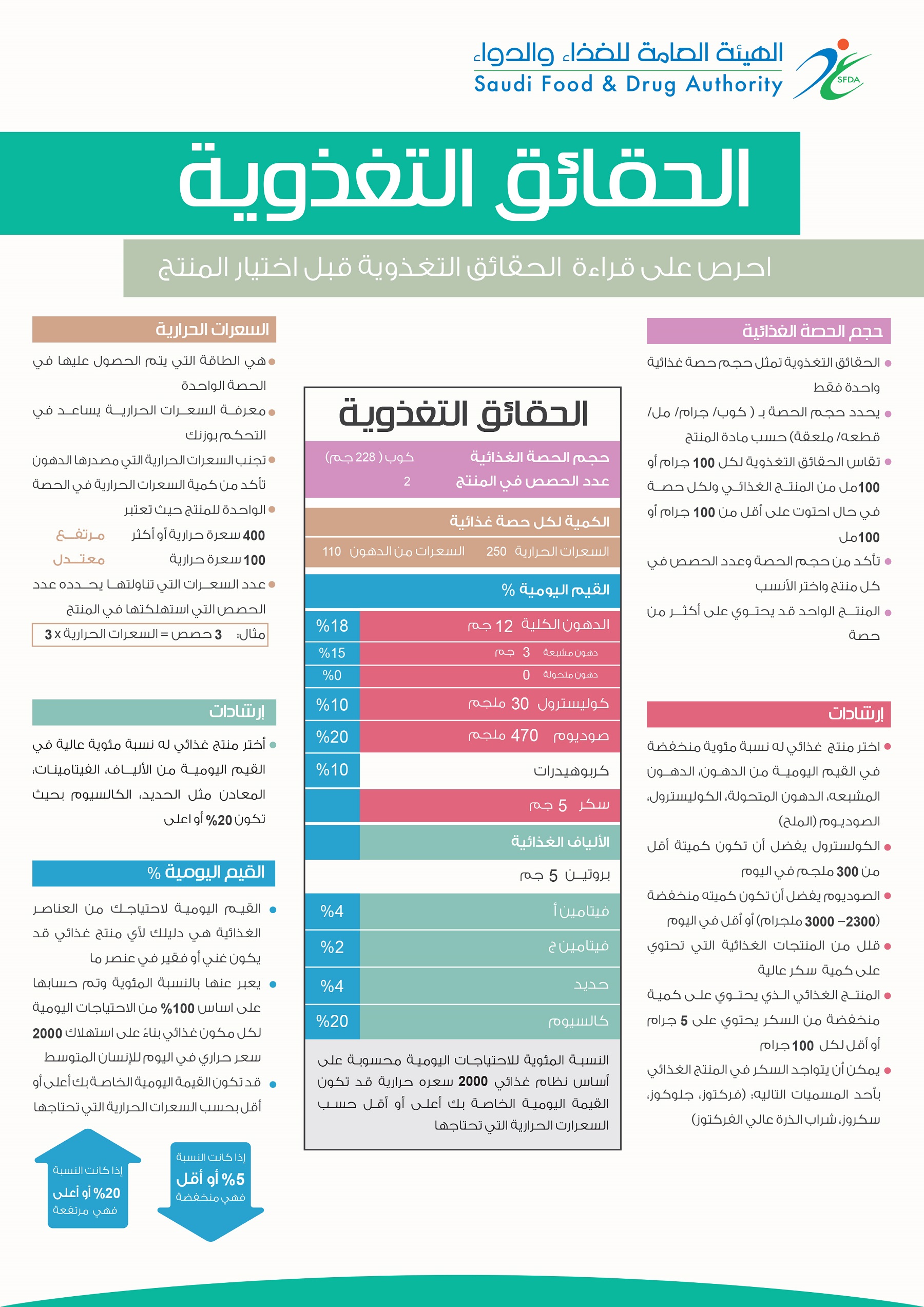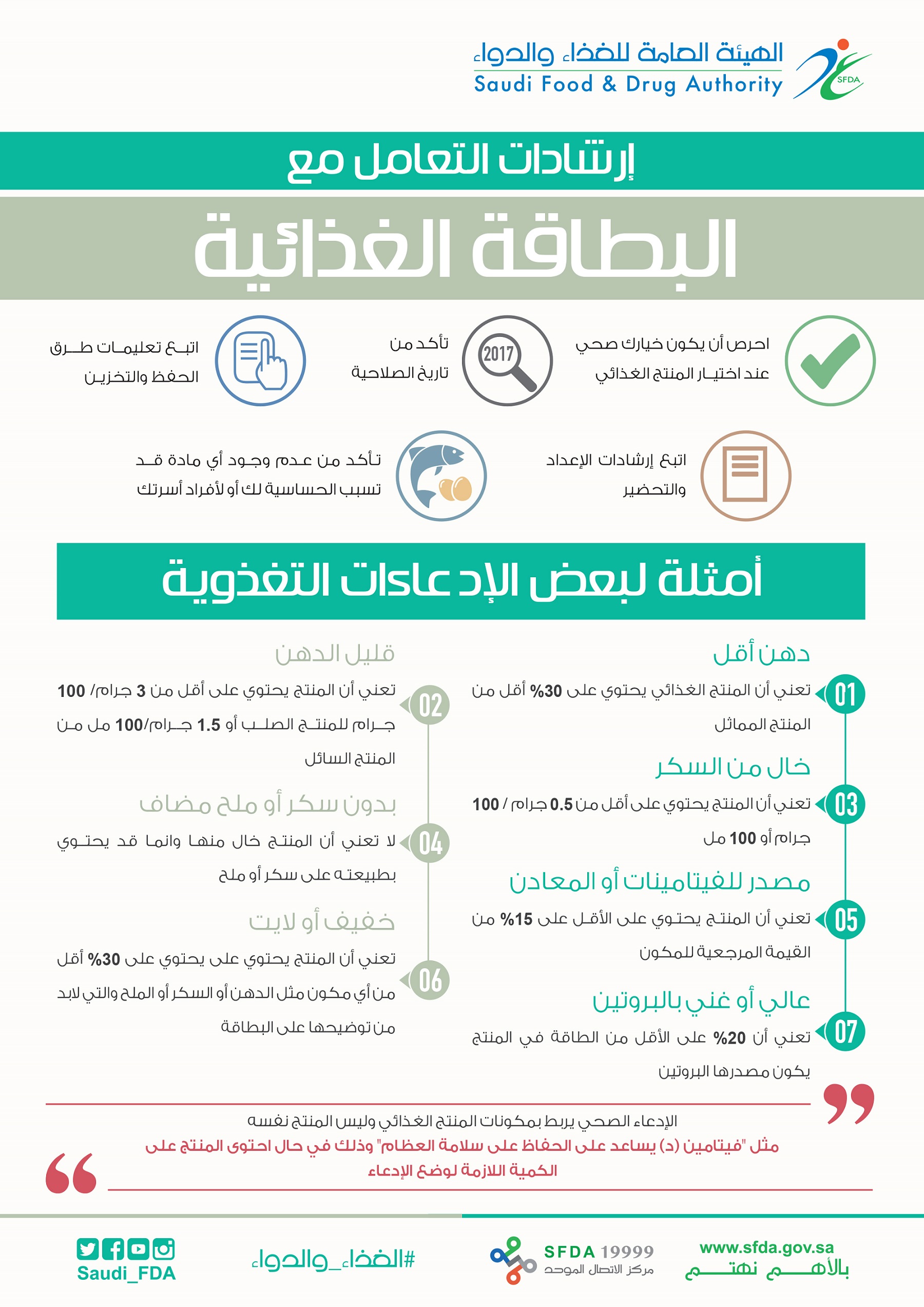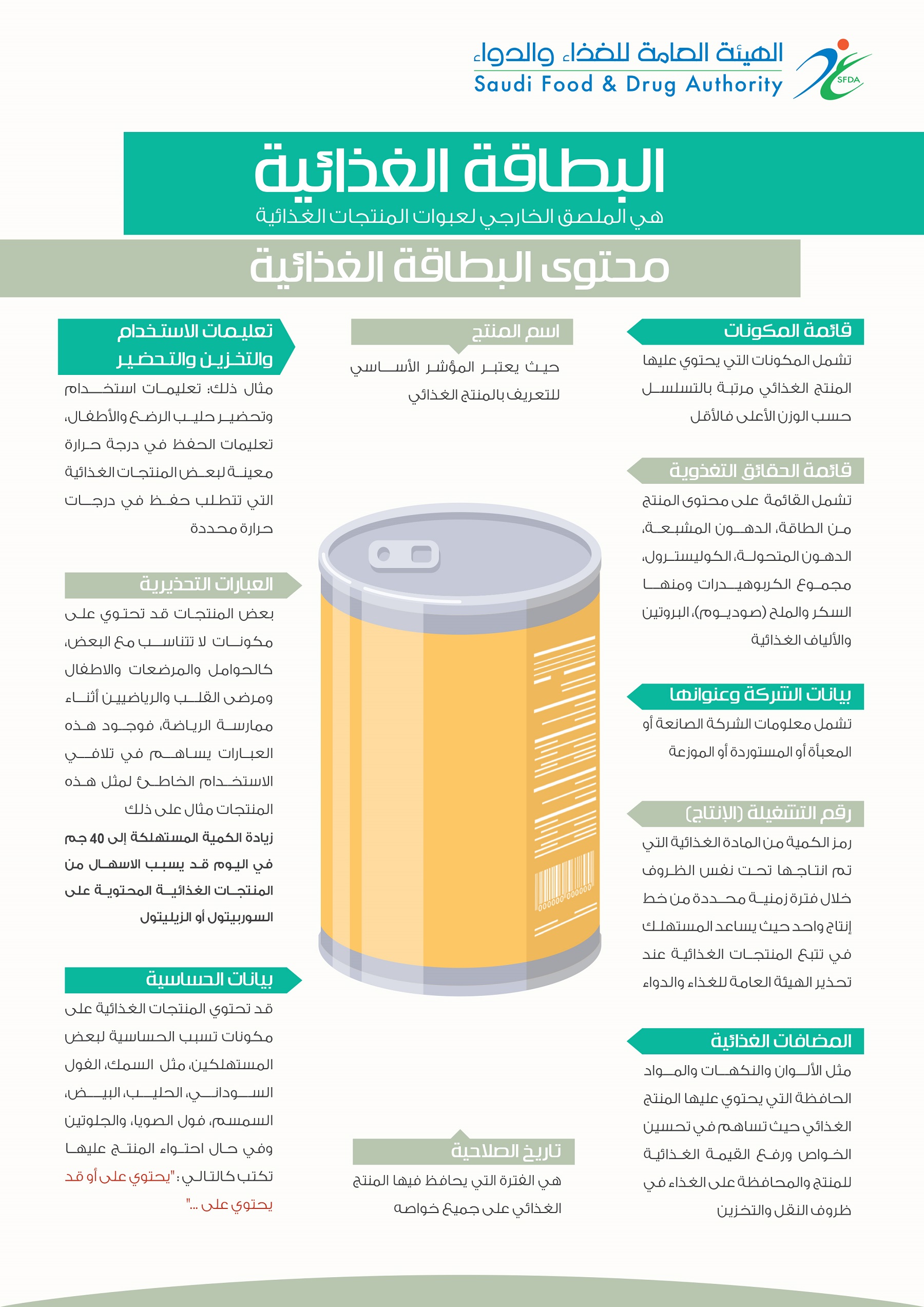 البطاقة الغذائية آنفوجرافيك محتوى البطاقة الغذائية تعرف على الحقائق التغذوية للمنتج إرشادات التعامل مع البطاقة الغذائية أمثلة لبعض الإدعاءات التغذوية