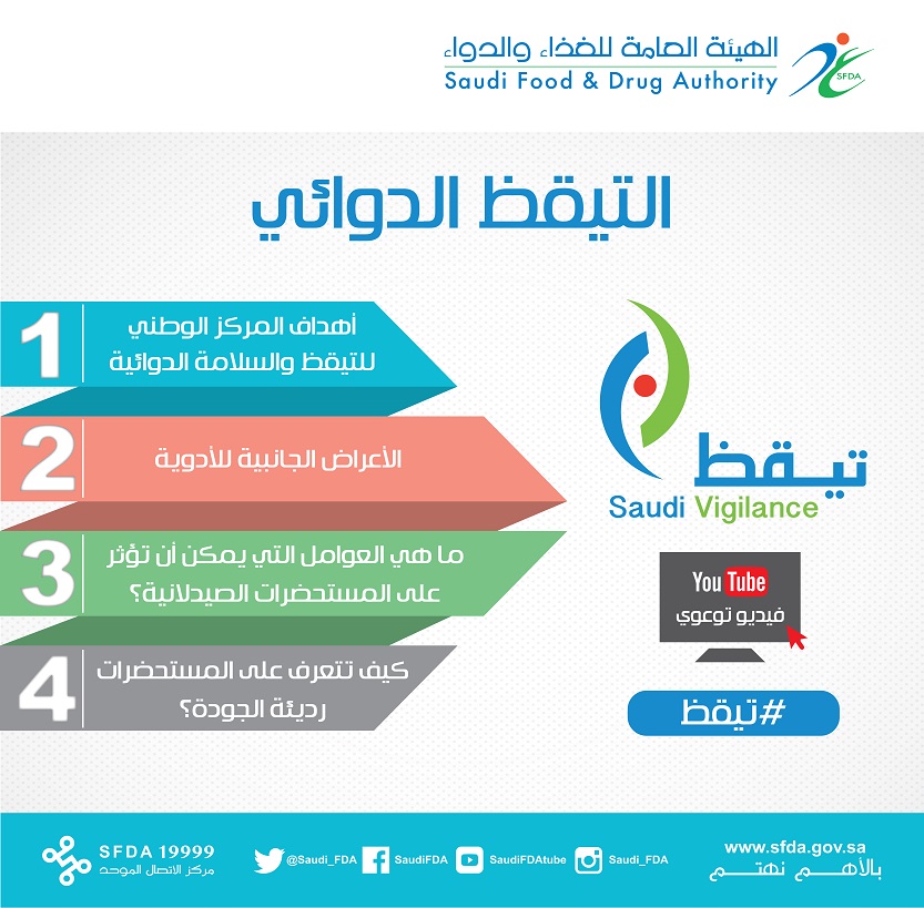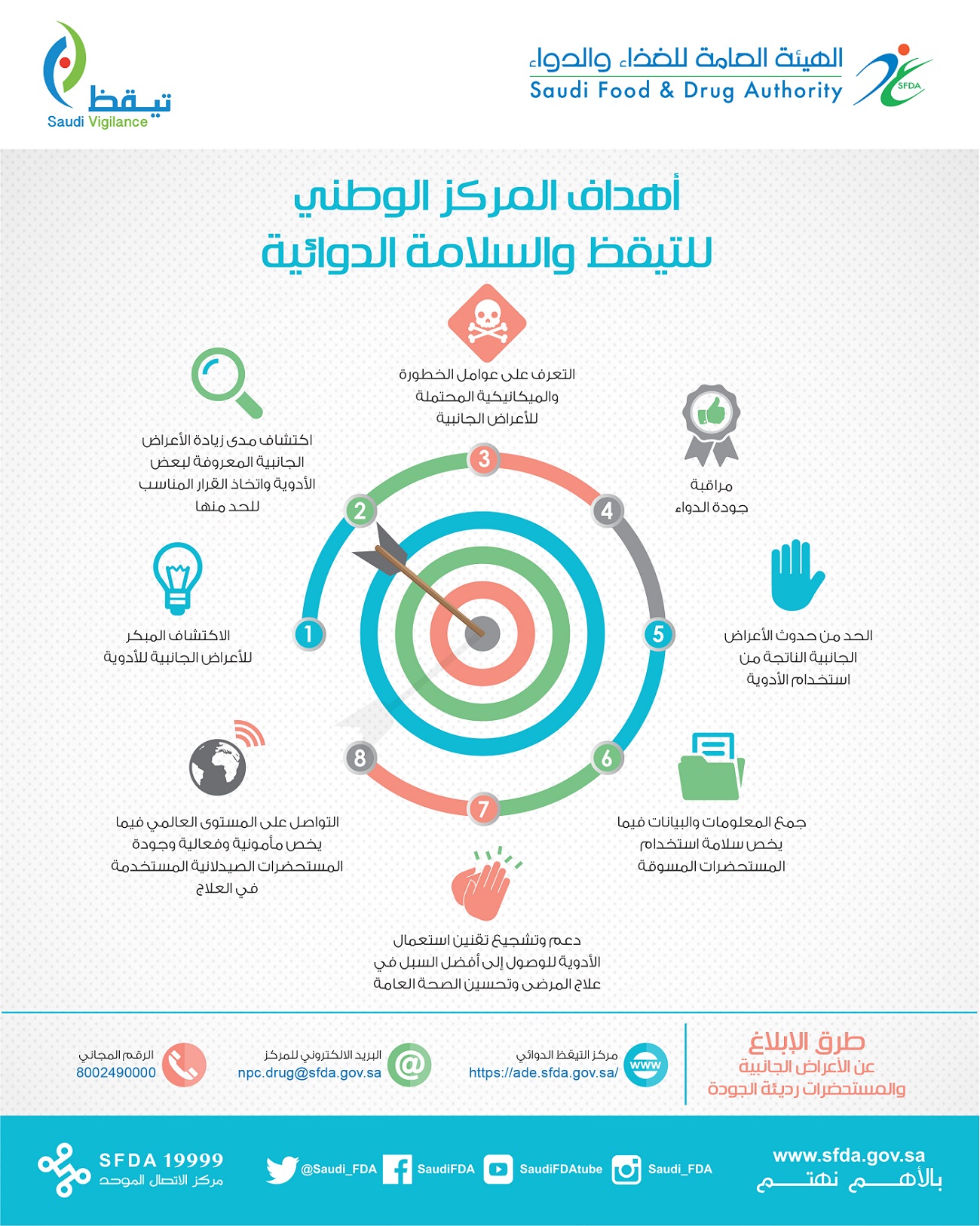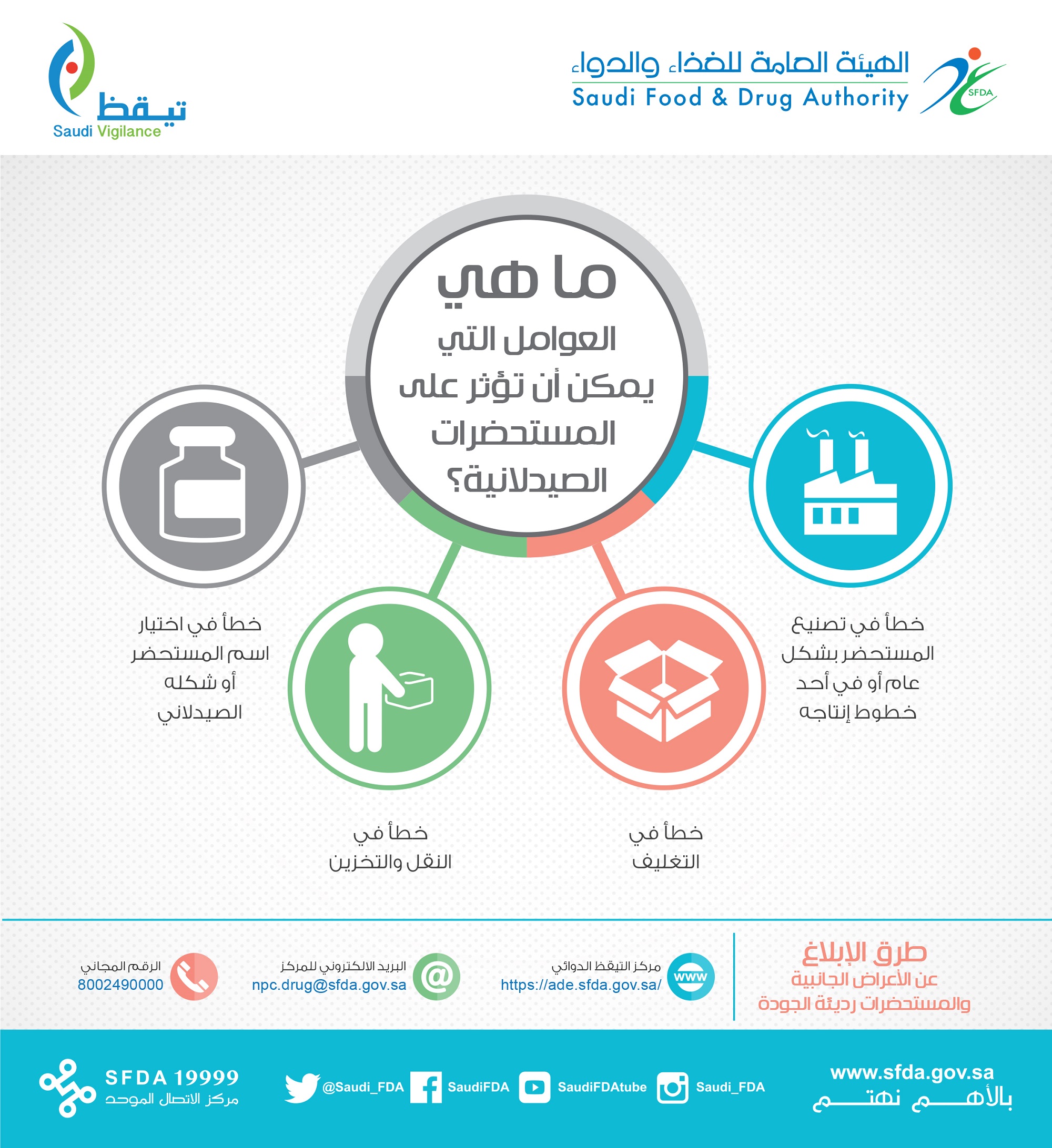 التيقظ الدوائي آنفوجرافيك أهداف المركز الوطني للتيقظ والسلامة الدوائية الأعراض الجانبية للأدوية ماهي العوامل التي يمكن أن تؤثر على المستحضرات الصيدلانية كيف تتعرف على المستحضرات رديئة الجودة؟