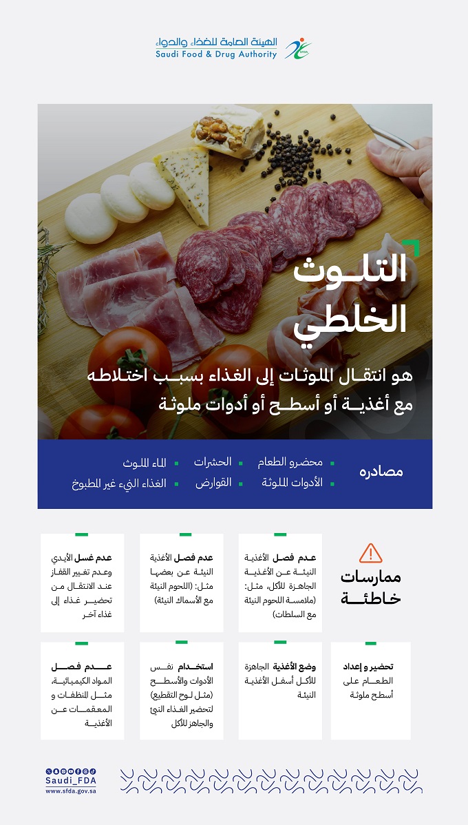 نصحت الهيئة العامة للغذاء والدواء بفصل الأغذية النيئة عن الأغذية الجاهزة للأكل، واستخدام أدوات وأسطح مختلفة عند التحضير، وذلك لتجنب "التلوث الخلطي" وحدوث التسمم الغذائي.