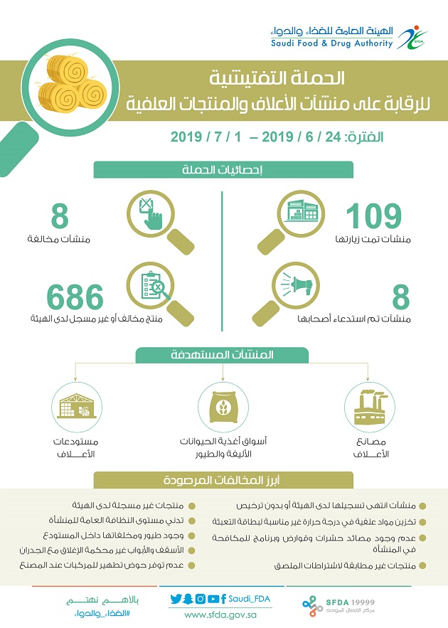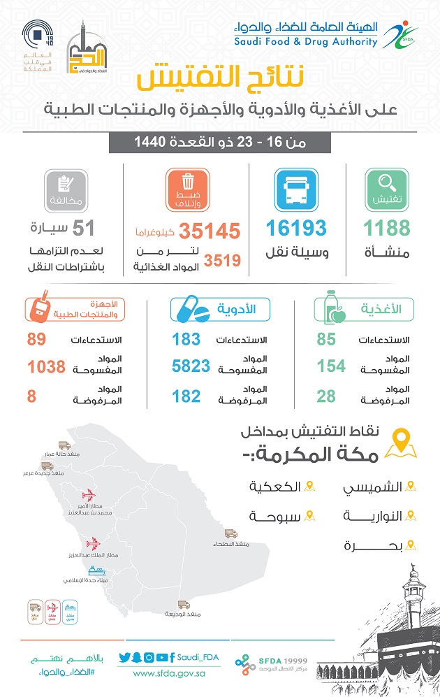 2019-08-05 الهيئة "الغذاء والدواء" تُغلق 10 منشأت غذائية، وتتلف 28 طناً من المواد الغذائية بالعاصمة المقدسة