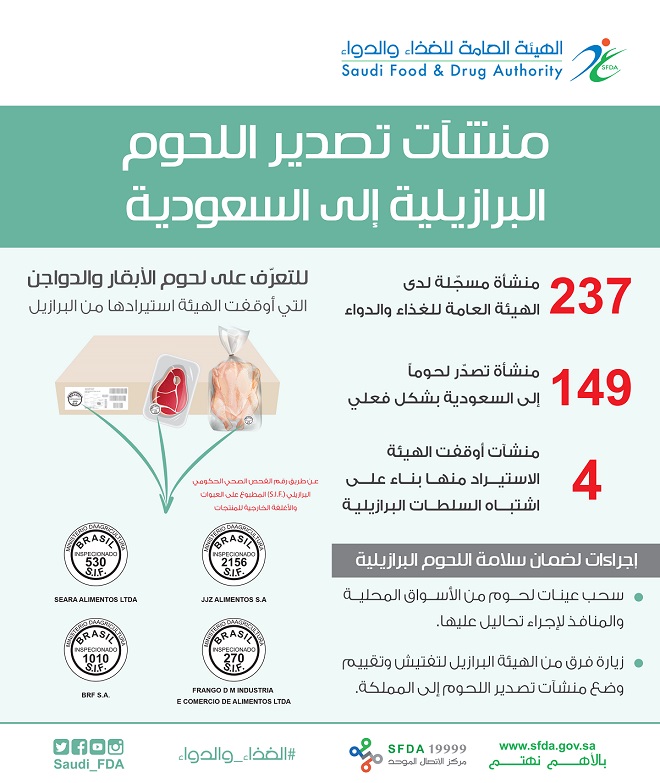"الغذاء والدواء" تتخذ سلسلة إجراءات لضمان سلامة اللحوم البرازيلية