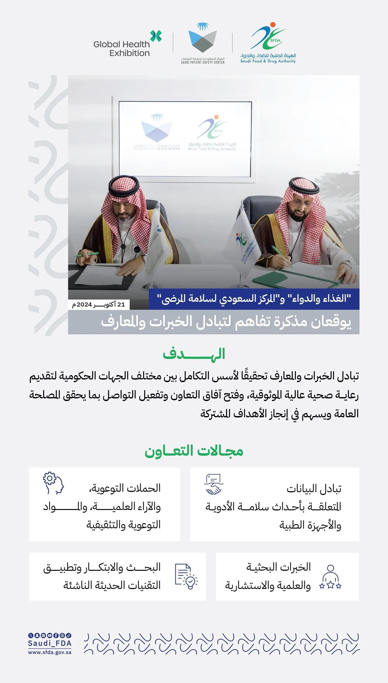 2024-10-21 الدواء "التخصصي" والهيئة العامة للغذاء والدواء يوقّعان اتفاقية لتعزيز سلامة المنتجات الدوائية