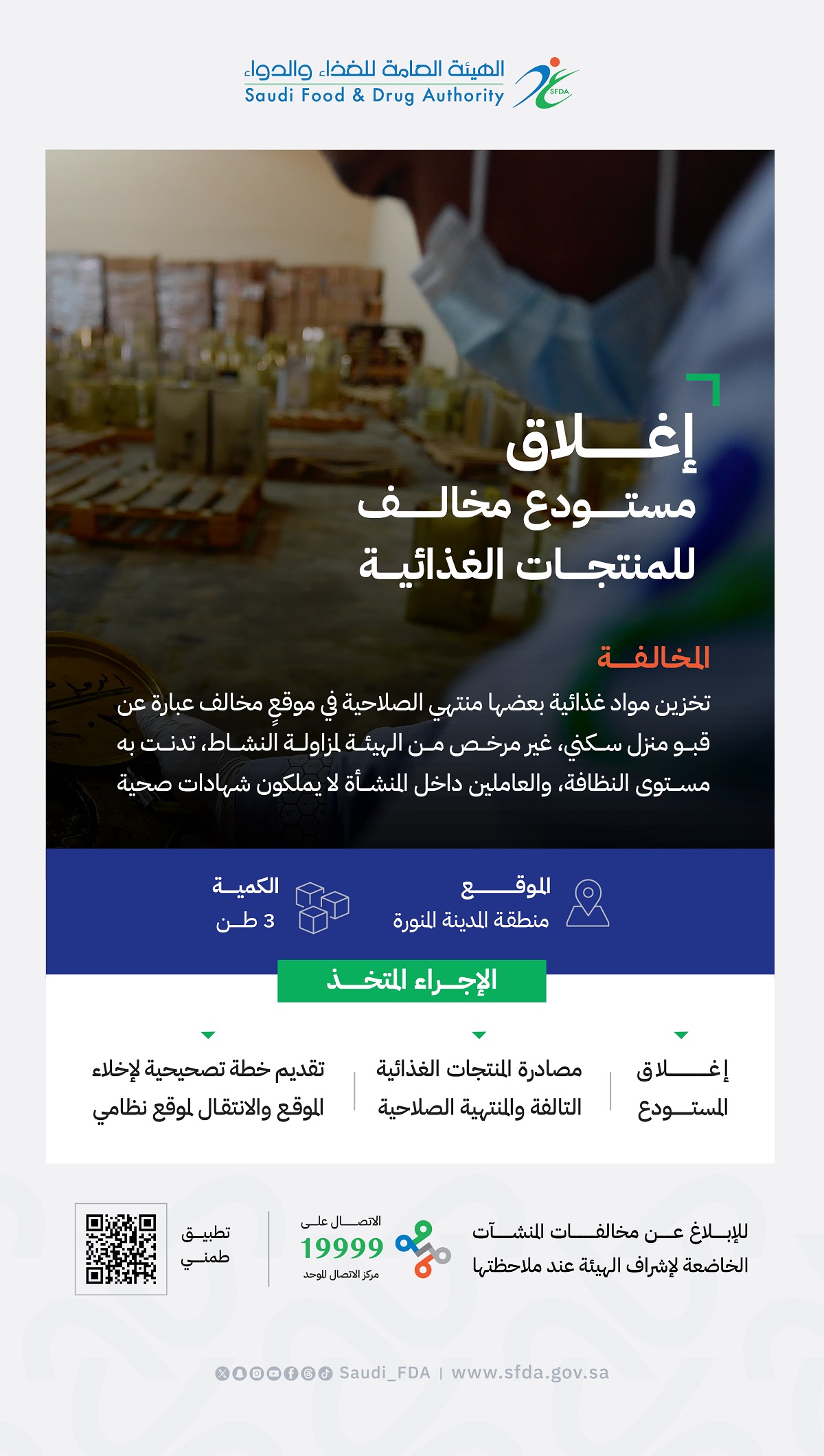2024-07-15 الهيئة "الغذاء والدواء": تغريم منشأة نصف مليون ريال لتلاعبها بتواريخ صلاحية "دواجن" منتهية الصلاحية وتخزين مواد غذائية مجهولة المصدر بالرياض