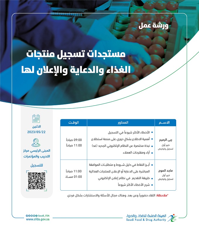 Mayمستجدات تسجيل منتجات الغذاء والدعاية والإعلان لها